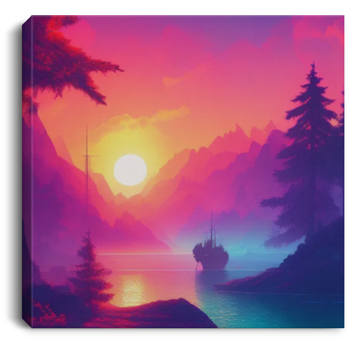 "Synth Wave Sky Lake View 1 of 4" Print